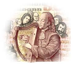25‭ ‬March 1738: The death of the Harpist Turlough O'Carolan/ Toirdhealbhach Ó Cearbhalláin on this day. He was the most famous Irish musician and player of his day who plied his trade throughout Ireland. He was born in 1670 at Nobber, Co Meath and from an early age trained to become a player of the harp. However at the age of 18 he caught the smallpox and was left Blind. Nevertheless he continued his love of the instrument and mastered his disability. Due to the generosity of a patron, Mrs. MacDermott, he was able to equip himself for the road with a harp, a horse, a guide, and the money to launch a career as an itinerant harper, playing for patrons throughout the Irish countryside.